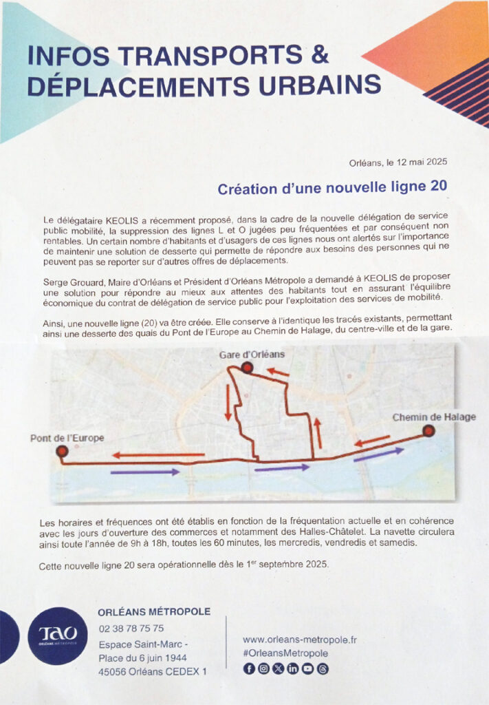 Mais, outre le fait que nous regrettons de ne pas avoir été associés au processus de réflexion sur l’avenir de ces navettes, notre association ne peut que déplorer que la solution qui a reçu l’aval du Maire d’Orléans fasse reculer un service public essentiel pour la mobilité au cœur de notre ville. Avec le choix qui est fait, le service est maintenu mais dans des conditions très dégradées.